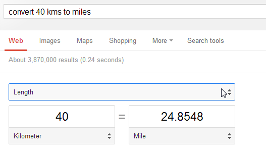 Type Convert 40 kms to miles - in Google, click on dropdown for more operations
