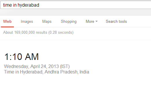 Type Time in hyderabad - in Google search, replace hyderabad with any other city