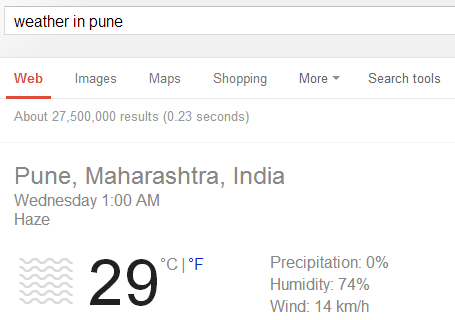 Type weather in pune - in Google search, here replace pune with any other city name.